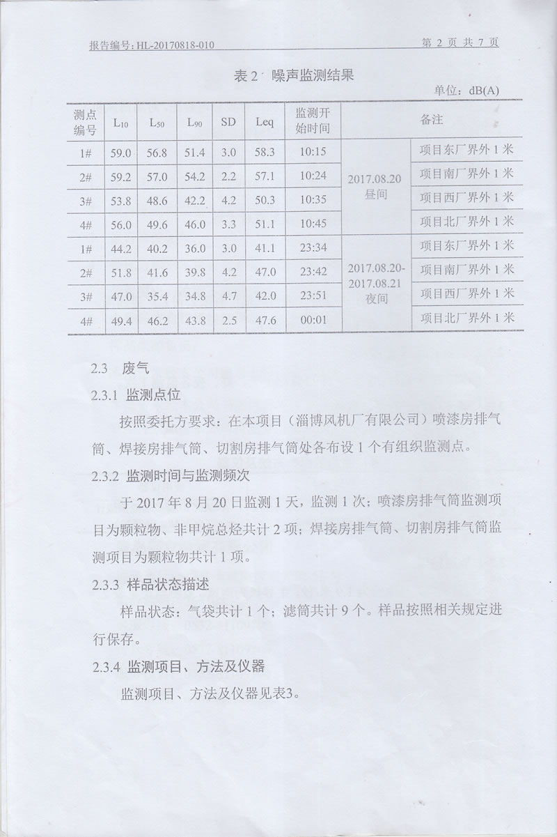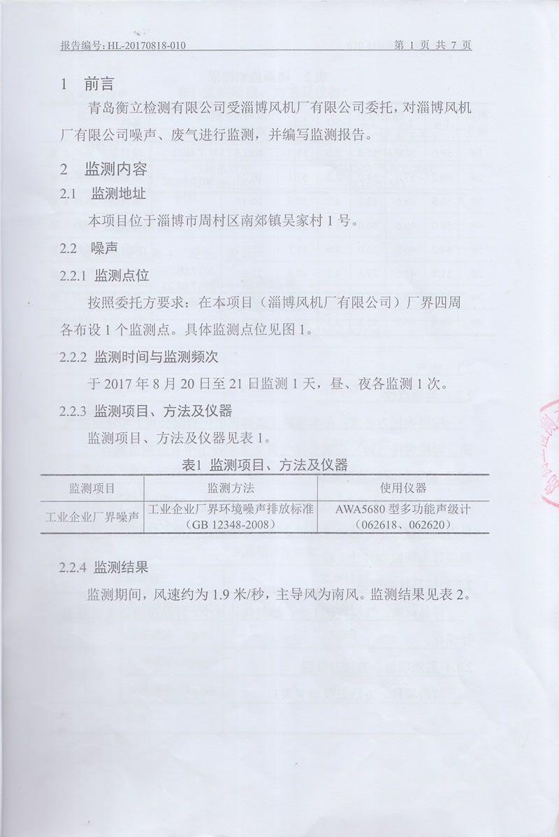 淄博風(fēng)機廠(chǎng)監測報告公示