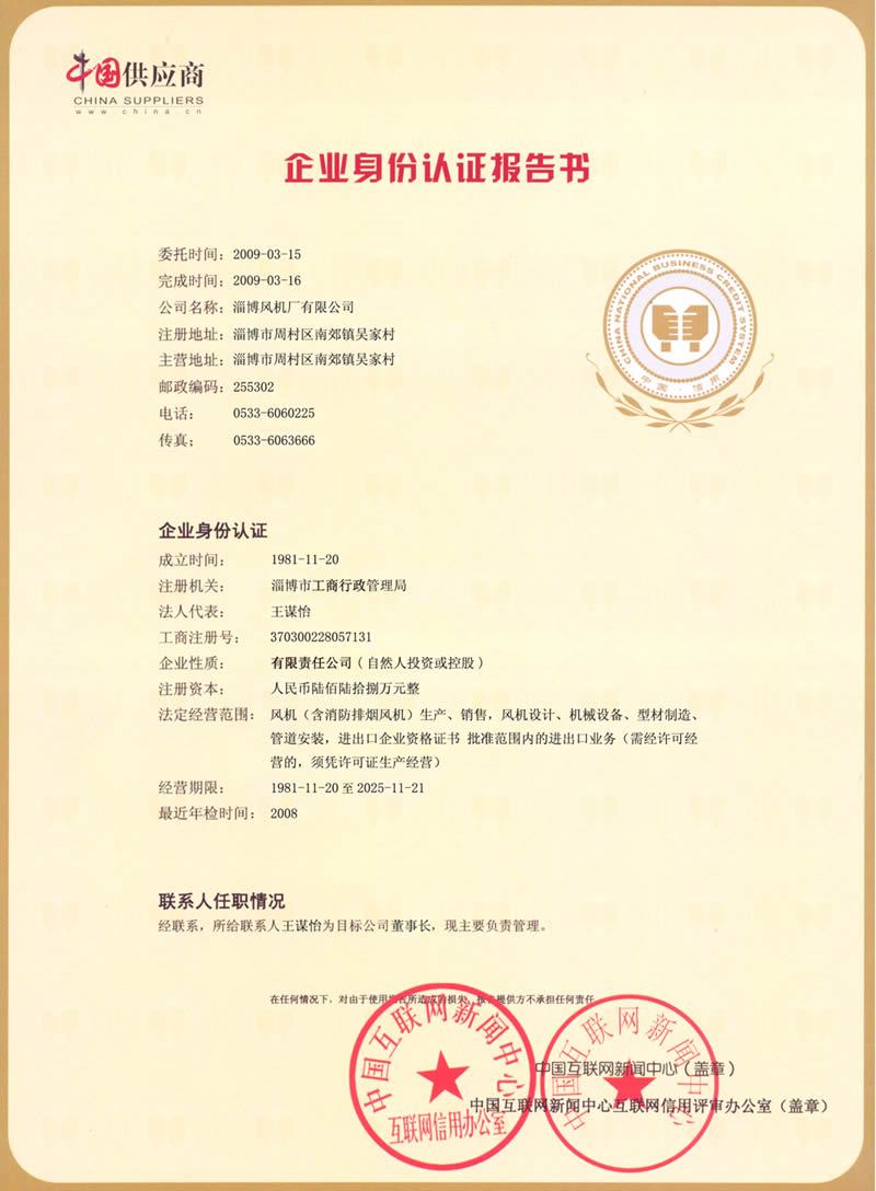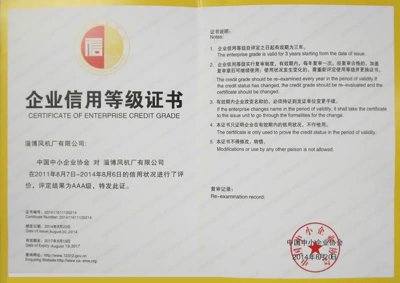 熱烈慶祝:一、淄博風(fēng)機廠(chǎng)有限公司全系產(chǎn)品通過(guò)能效綠色節能環(huán)保二級認證. 二、 淄博風(fēng)機廠(chǎng)有限公司通過(guò)安全標準化驗收合格. 三、注冊資金增資至7800萬(wàn).